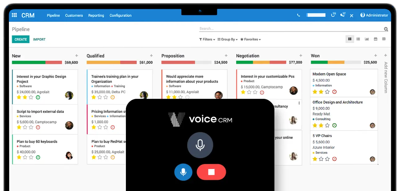 VoiceCRM y VoiceERP funciona de manera nativa con Odoo, asegurando confiabilidad y un entorno sólido para tus equipos de ventas y usuarios en movimiento.